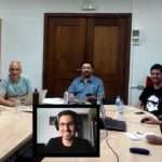 En la foto, de izquierda a derecha: Bernabé Cedrés, Carlos Westendorp, Alberto Aparici (por videoconferencia), Javier Licandro, Héctor Vives, Héctor Socas. Todos los comentarios vertidos durante la tertulia representan únicamente la opinión de quien los hace… y a veces ni eso. CB:SyR es una colaboración entre el Área de Investigación y la Unidad de Comunicación y Cultura Científica (UC3) del Instituto de Astrofísica de Canarias.