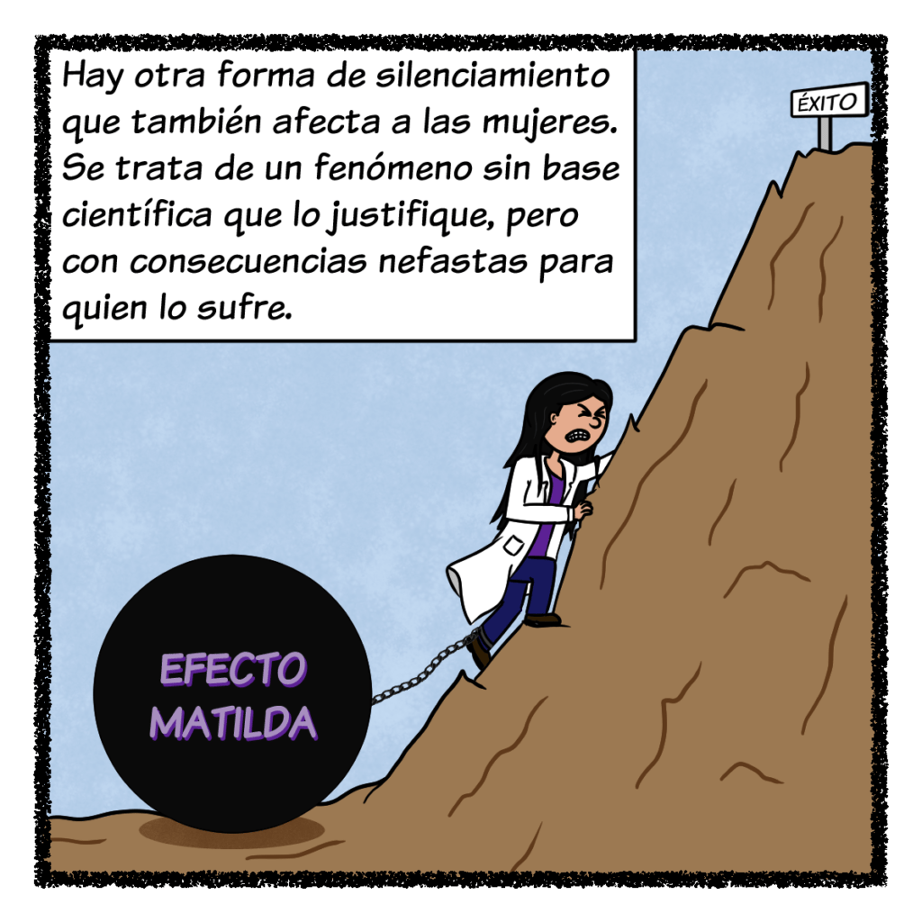 Hay otro fenómeno que también silencia a las mujeres, pero que, a diferencia de la lionización, no cuenta con base científica y tiene consecuencias nefastas para sus víctimas. Hablo del efecto Matilda, un fenómeno que supone la negación del reconocimiento a los logros y contribuciones hechas por las mujeres científicas en sus campos de estudio. Lamentablemente, muchas mujeres han sufrido esta discriminación a lo largo de la historia. Netti Stevens, Jean Purdy, lise Meitner o Jocelyn Bell Burnell son solo algunas de las mujeres de esta larga y vergonzante lista.